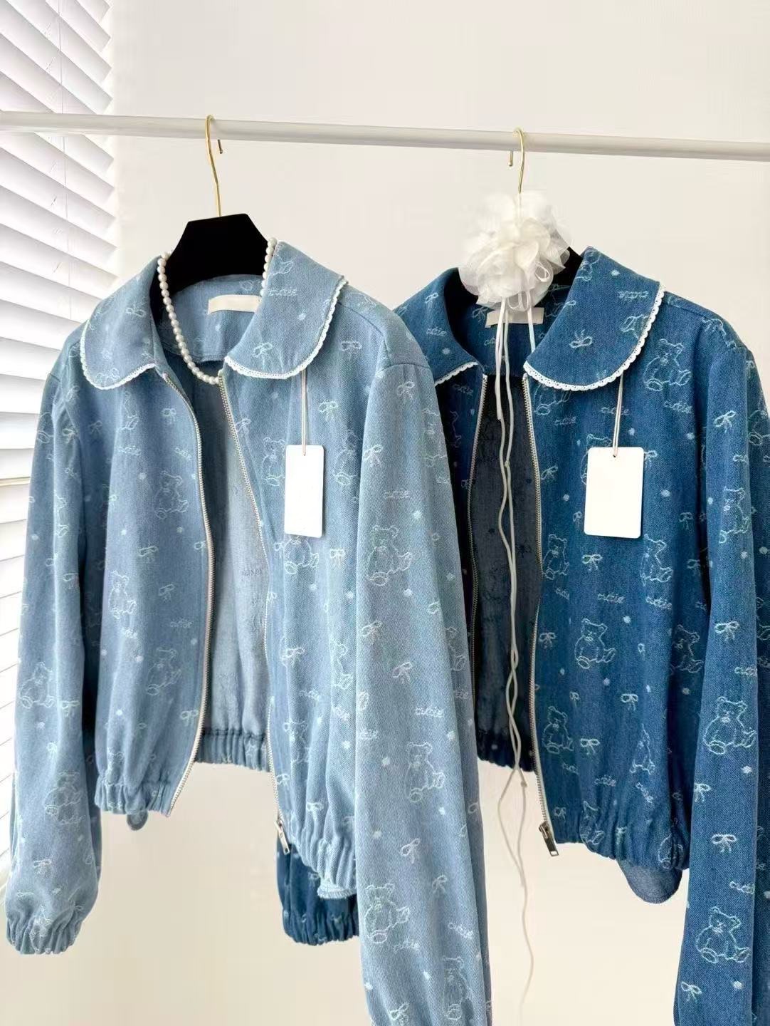 【客人許願】小熊牛仔短版外套