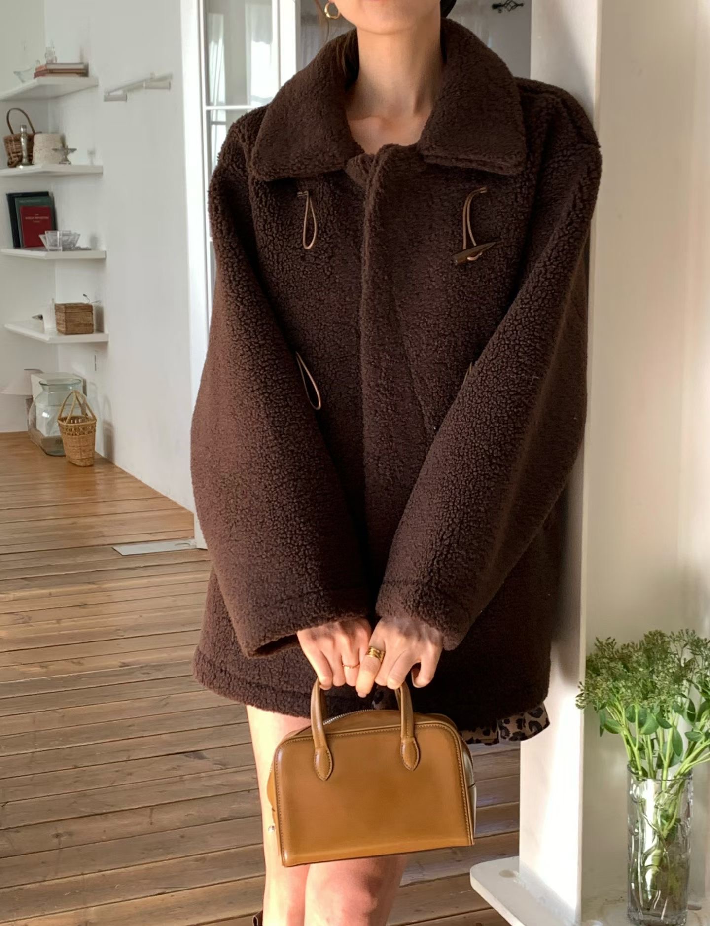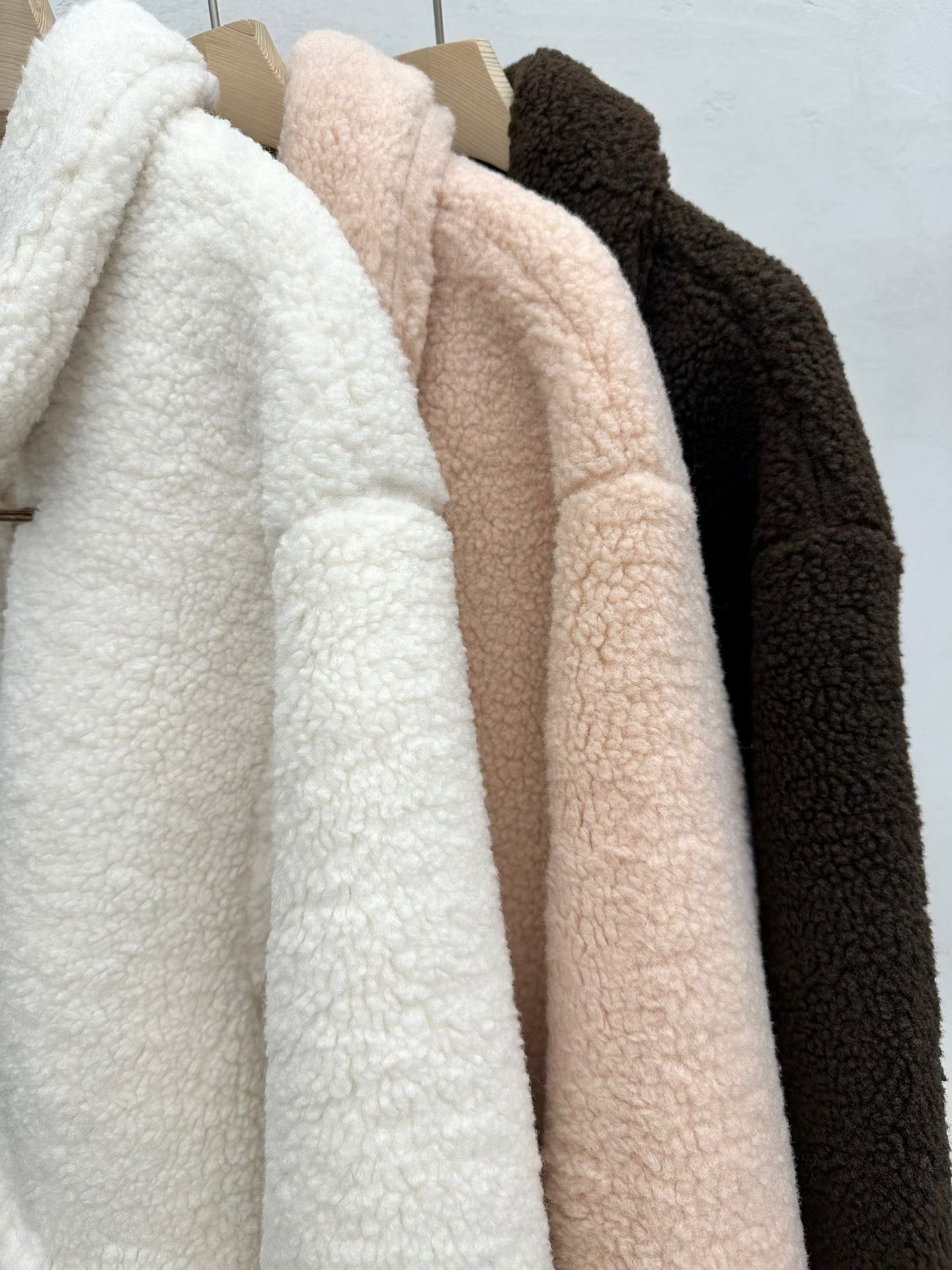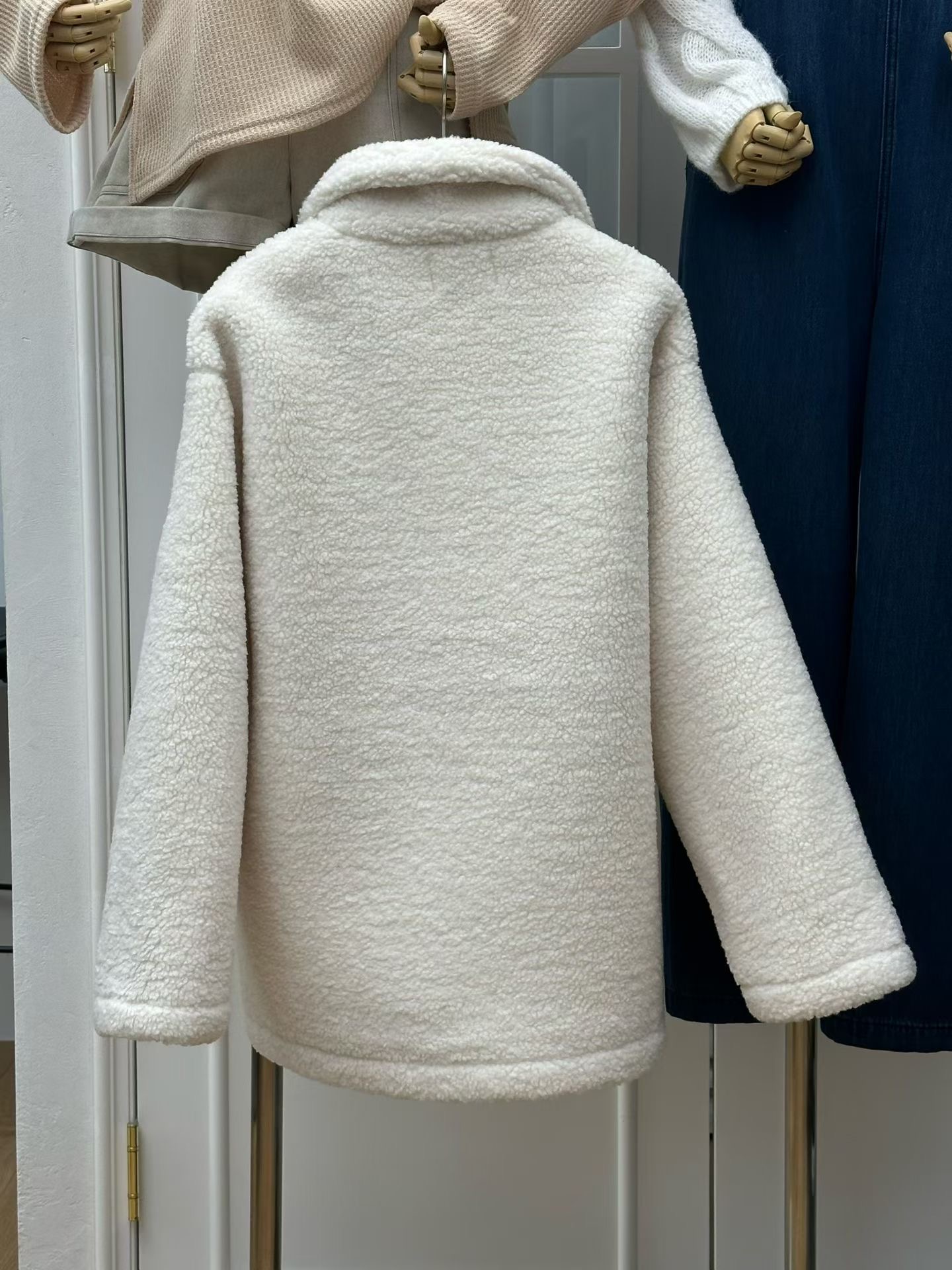 厚實的羊羔絨從領口一路延伸到袖口,蓬鬆卻不笨重,保暖度非常夠。