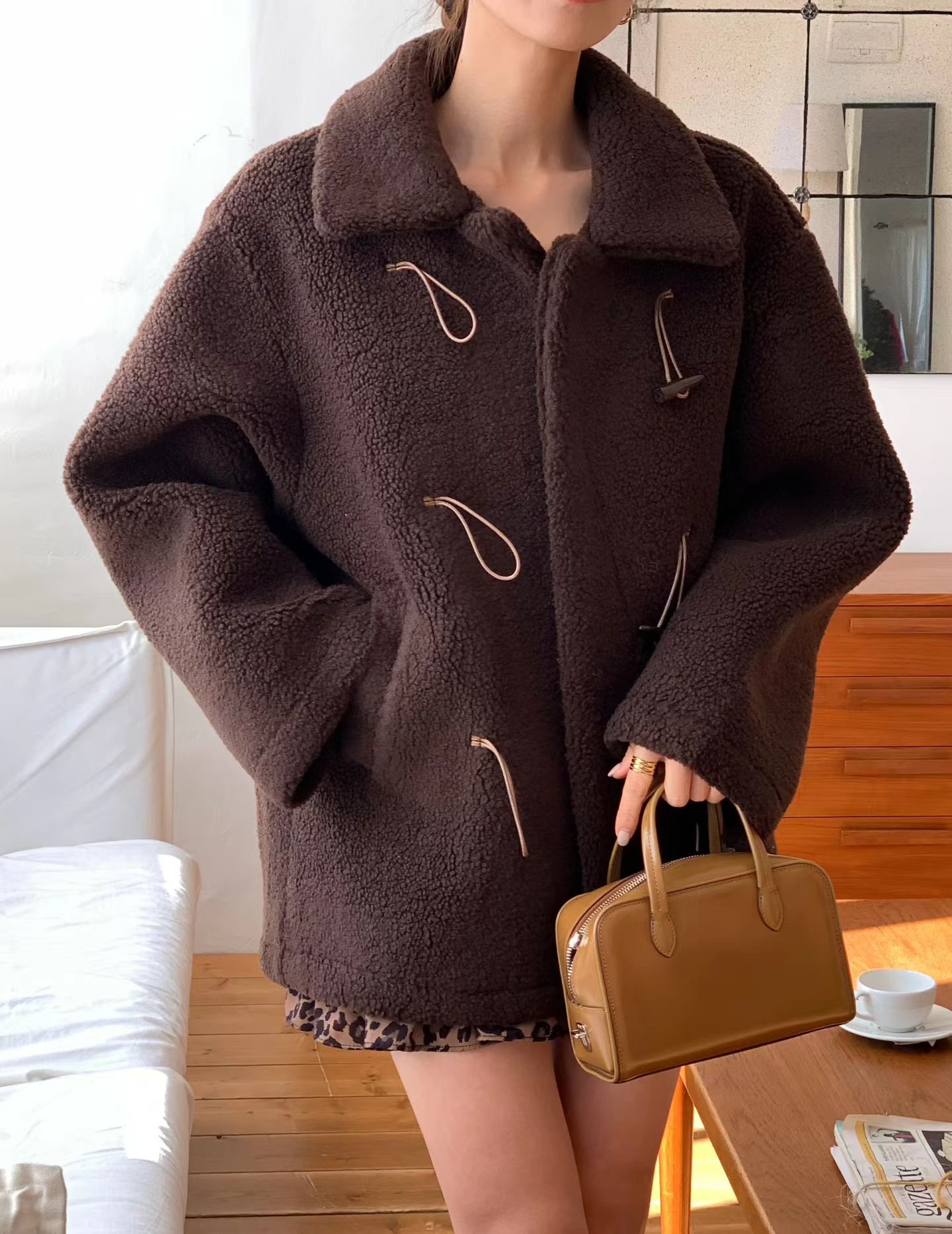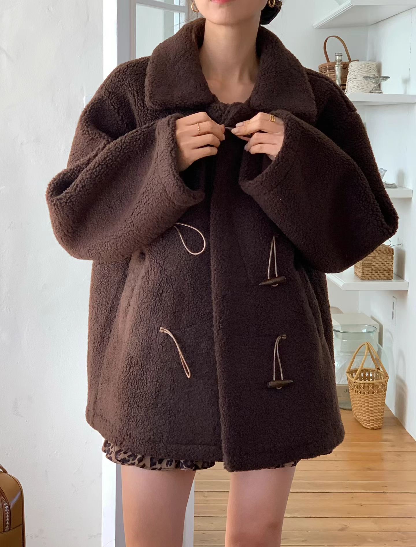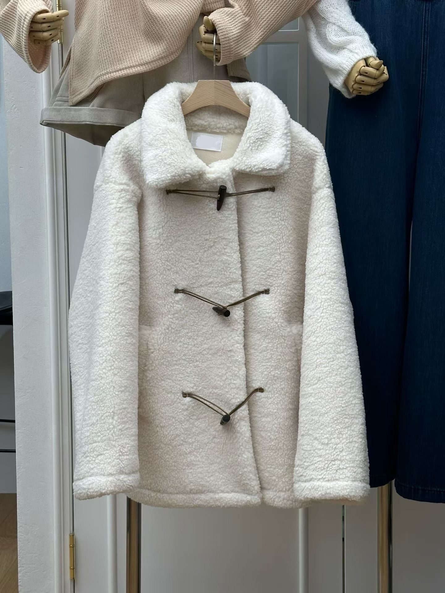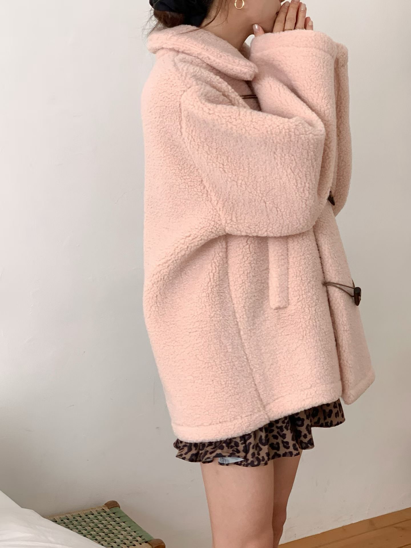 厚實的羊羔絨從領口一路延伸到袖口,蓬鬆卻不笨重,保暖度非常夠。