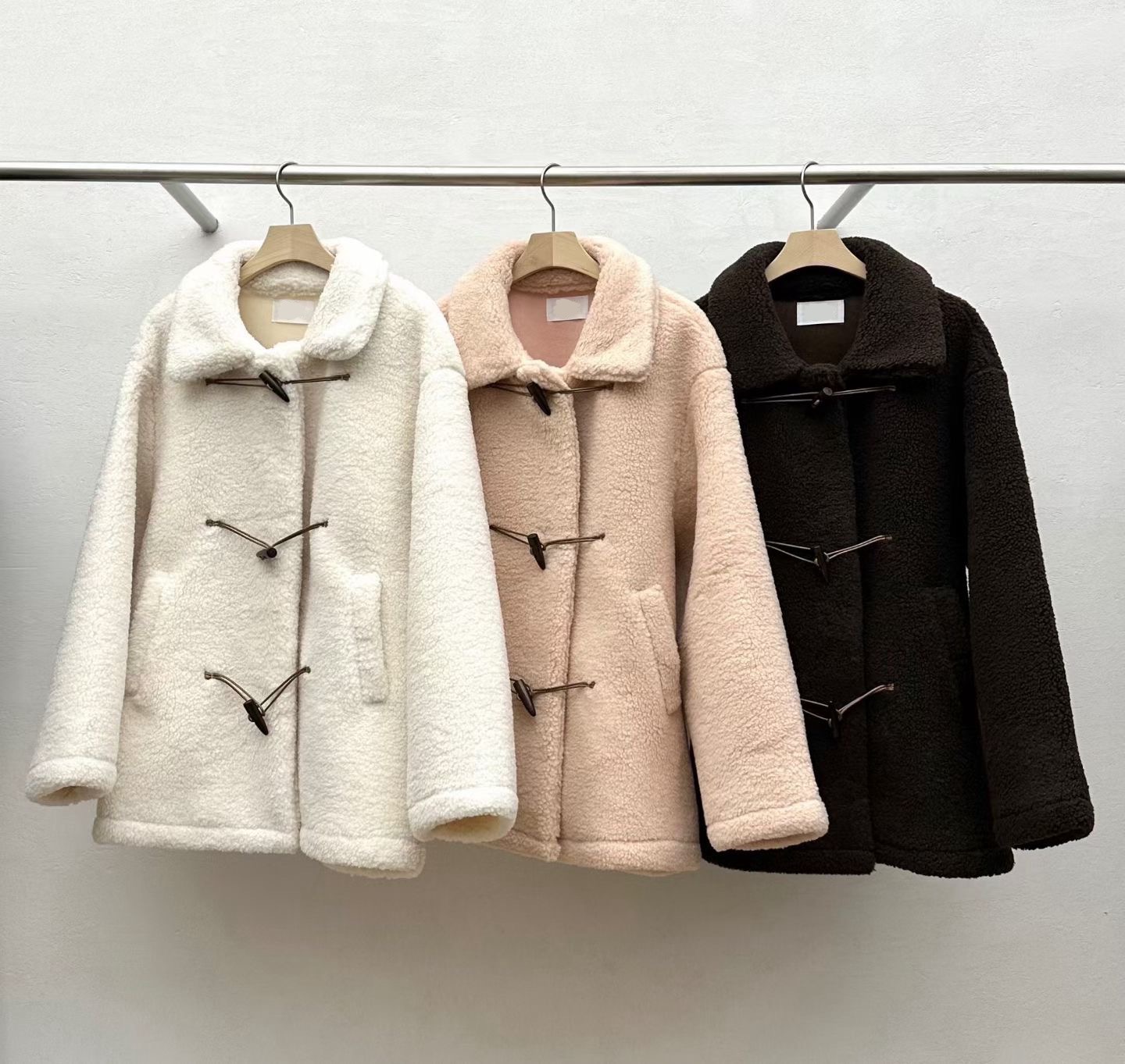 牛角扣是這件的亮點,做工乾淨、扣上之後更顯得整體俐落有型。