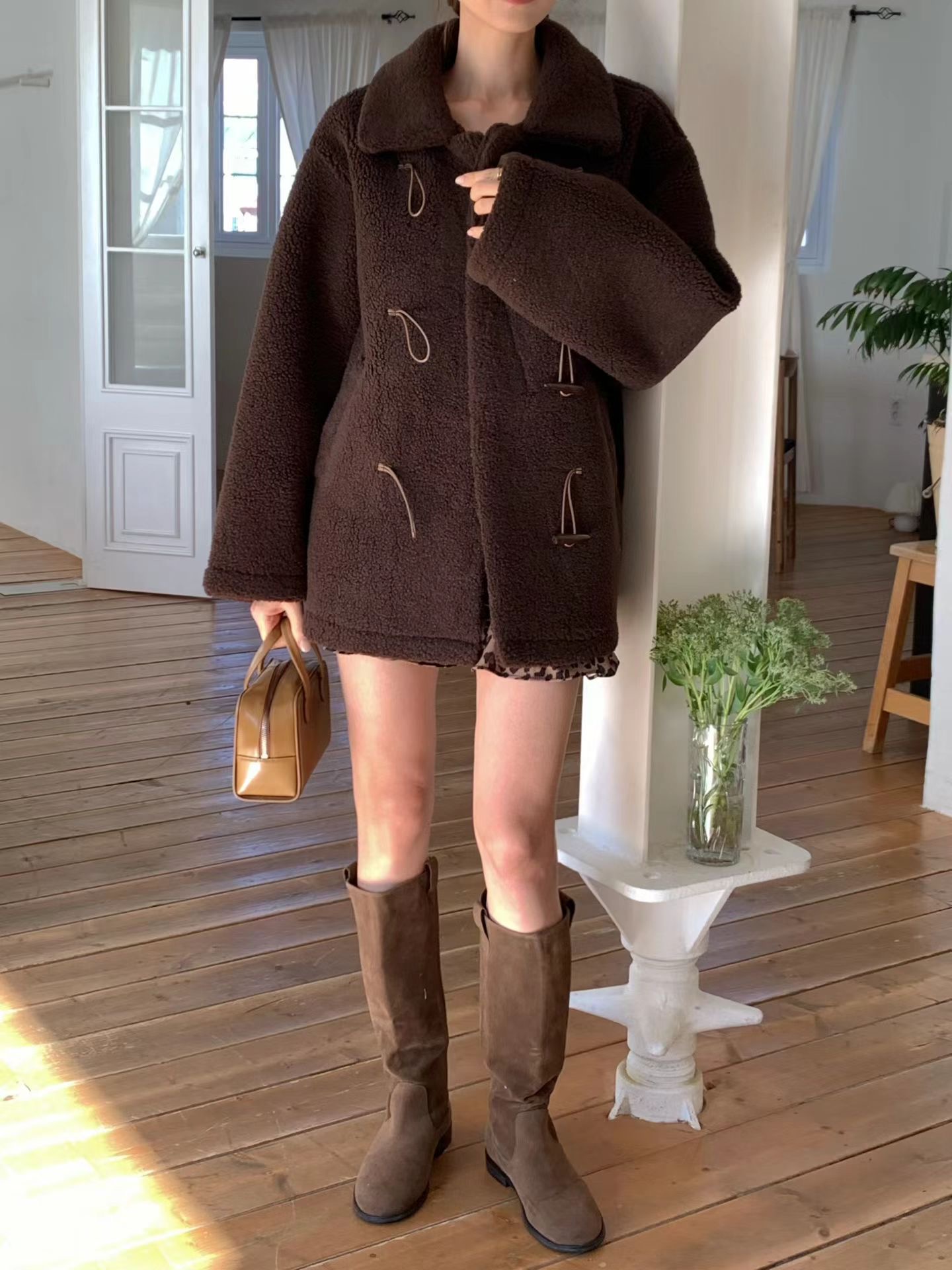 長度剛好落在大腿上方,不挑身高,搭短裙、靴子、長褲都很好看,是冬天非常實穿的厚磅外套。