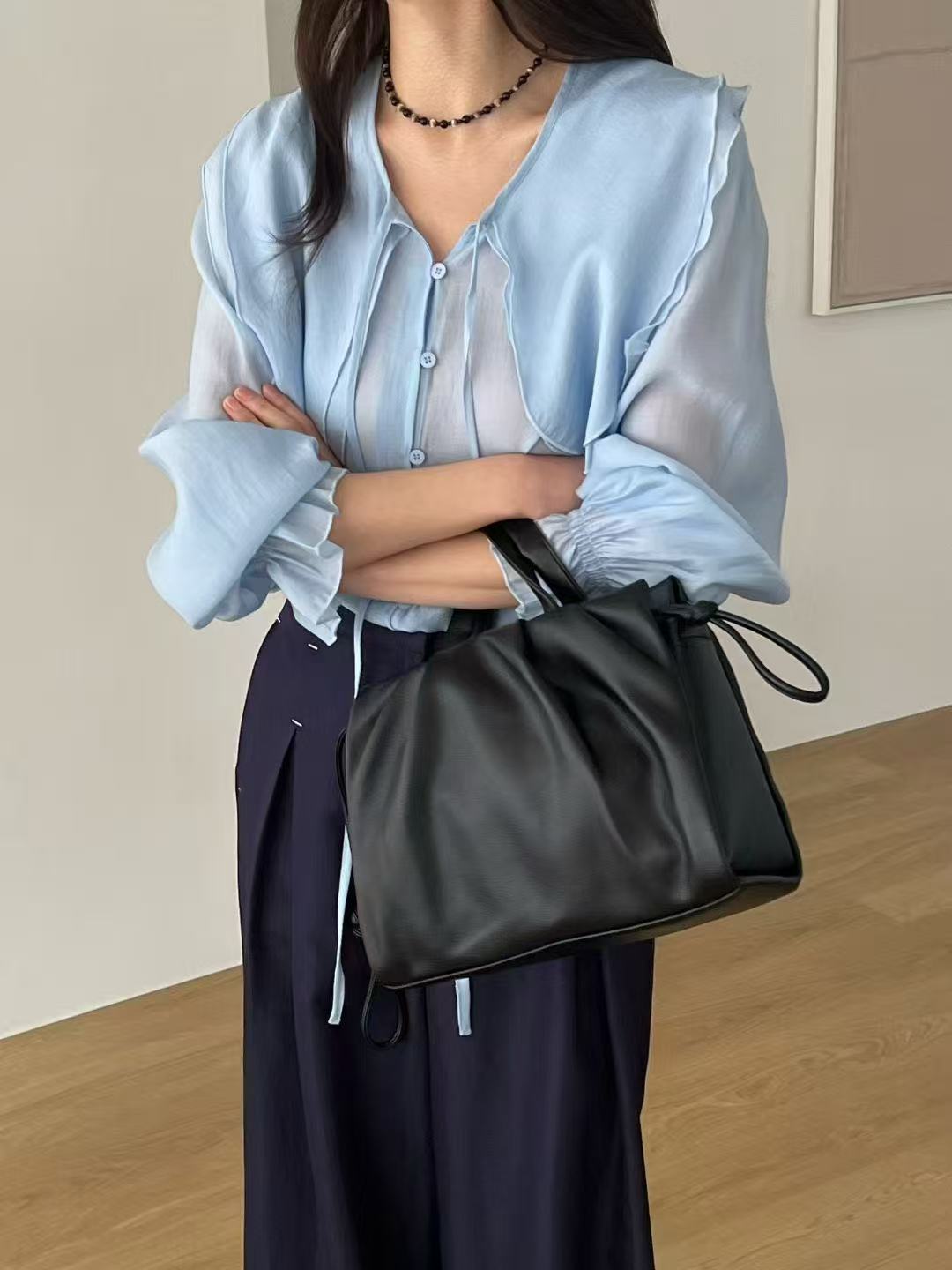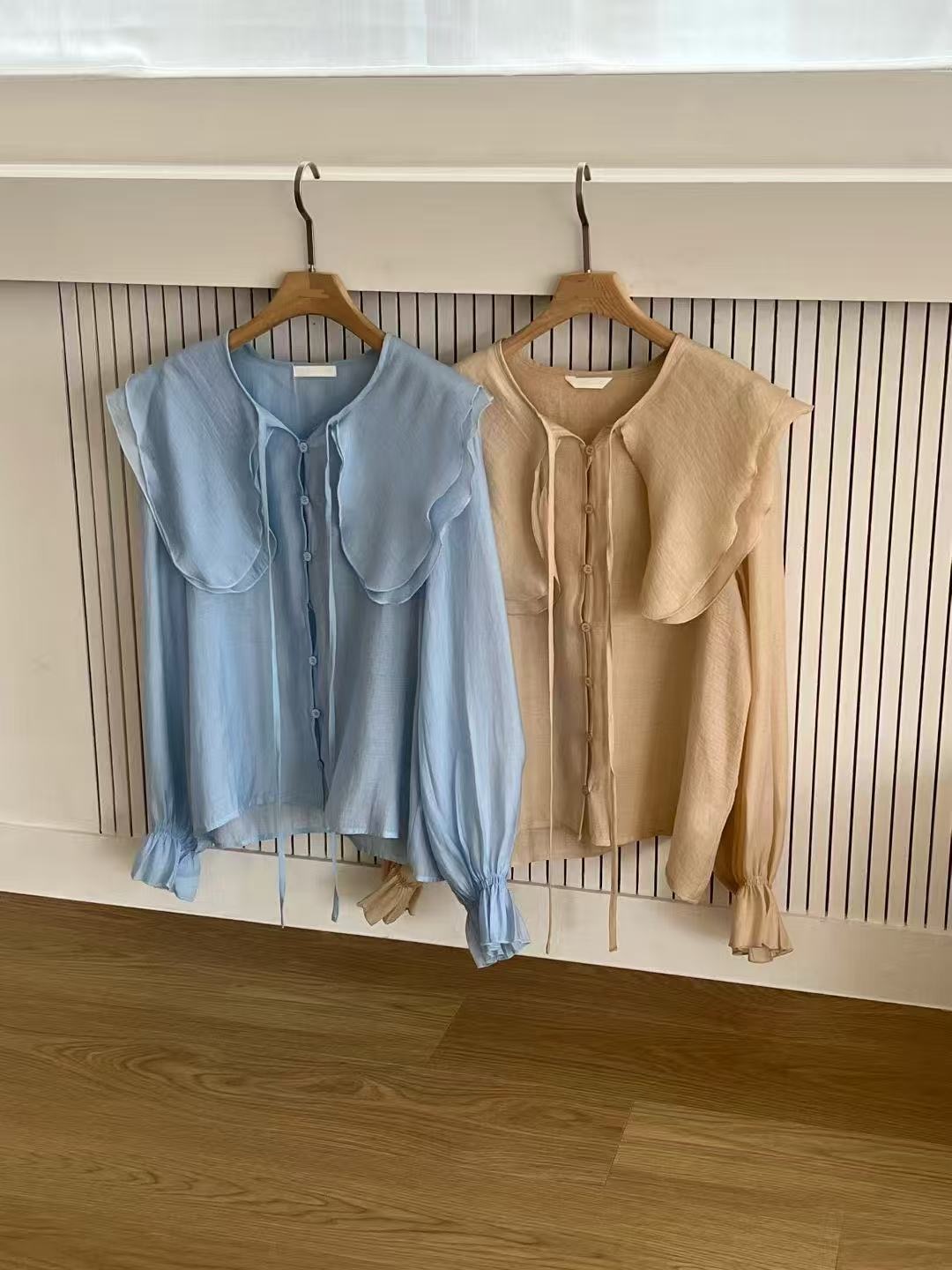 黃色呈現柔和溫暖的氣質,適合日常與輕鬆穿搭;藍色則更顯清新與俐落,適合上班或需要稍微打扮的場合。無論搭配褲裝或裙裝,都能輕鬆營造出優雅又不費力的穿搭風格。