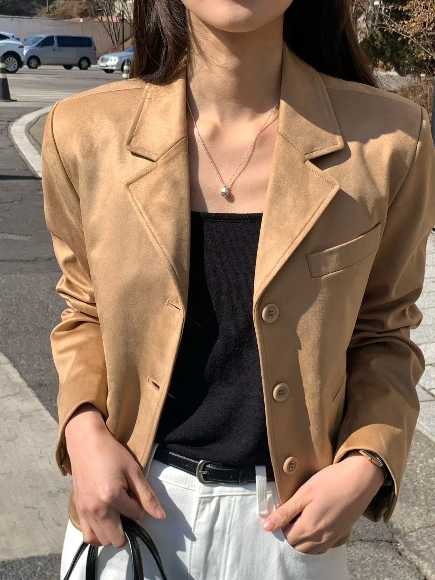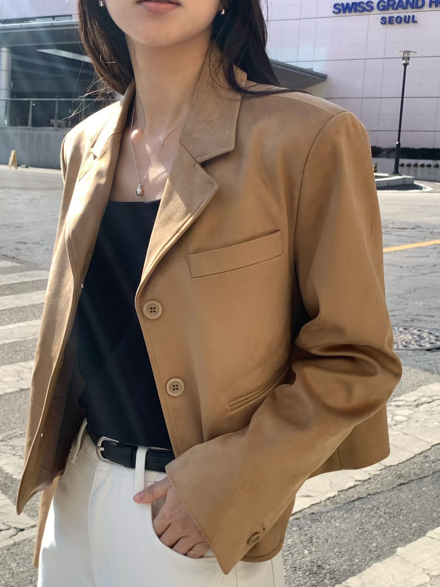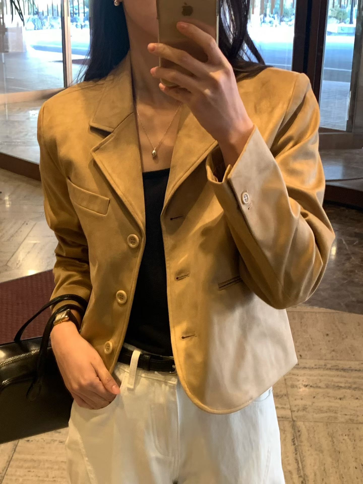 短版剪裁更顯比例,無論搭配白褲或牛仔褲都超有型。