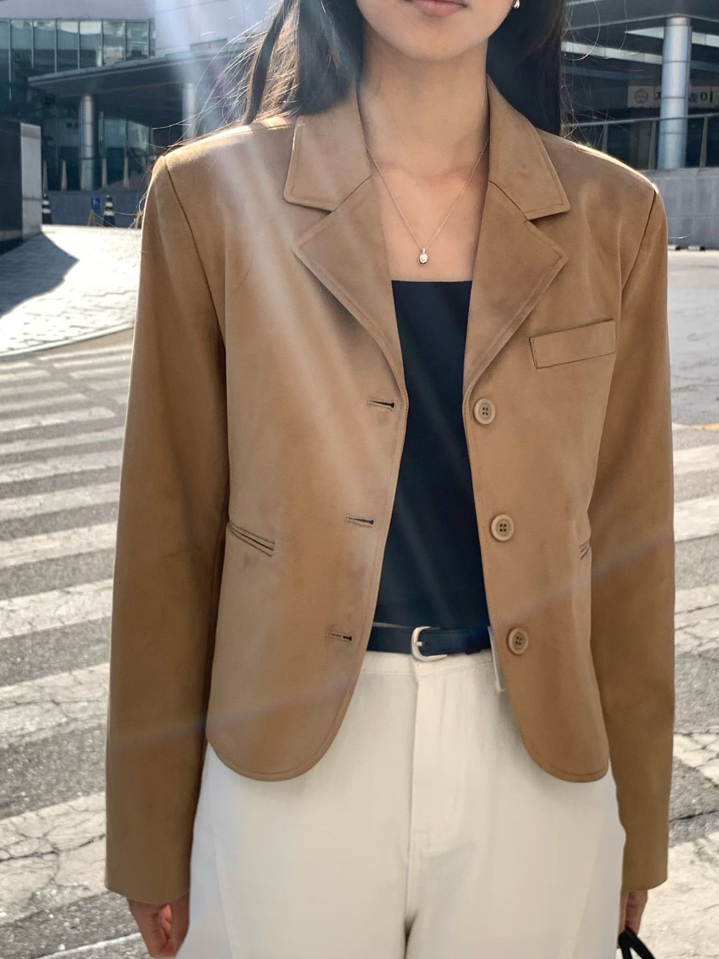質感麂皮材質,觸感柔滑,呈現溫潤霧面光澤。