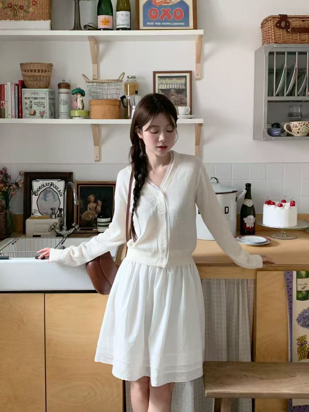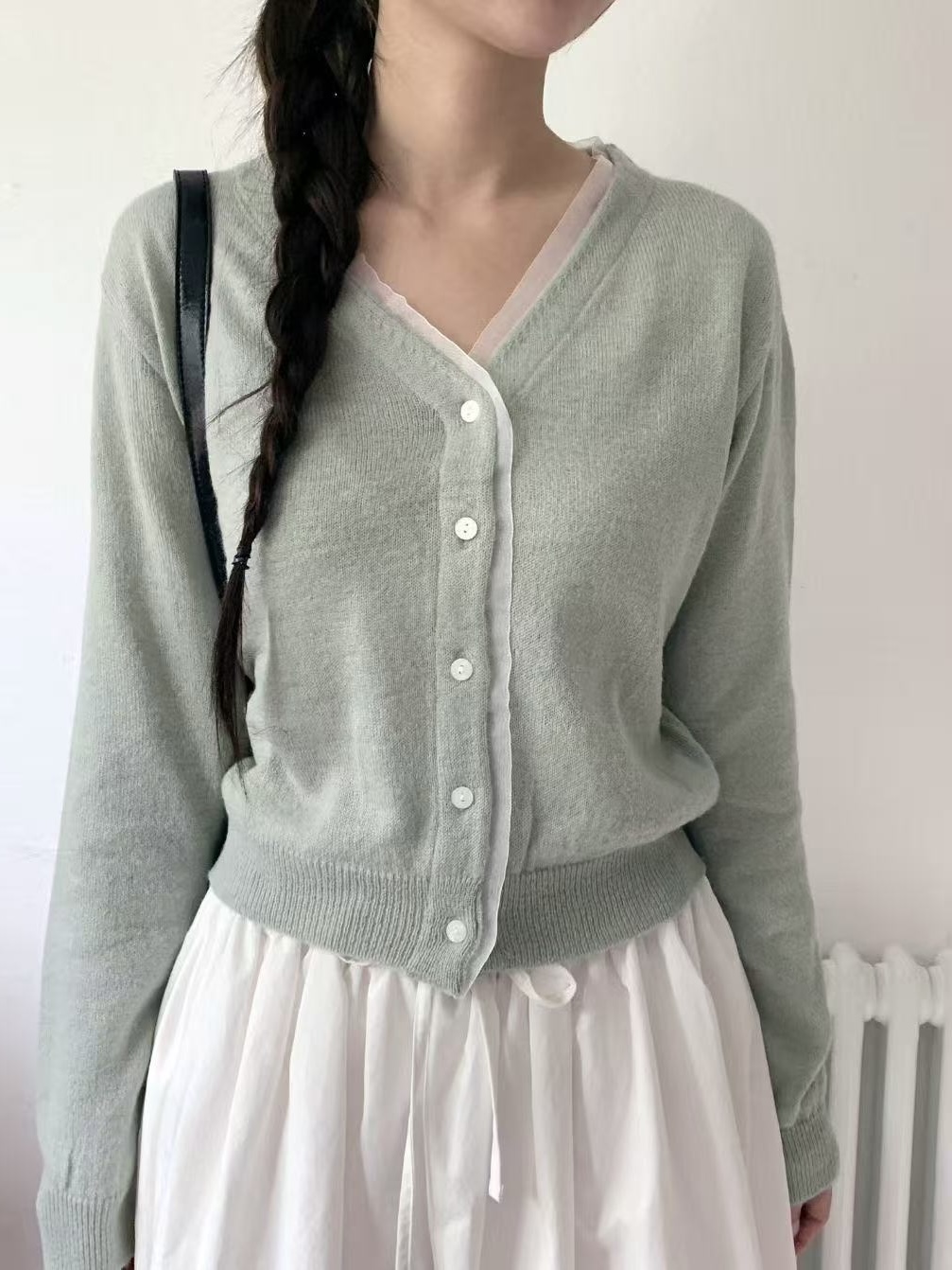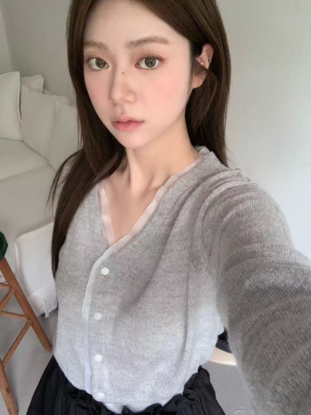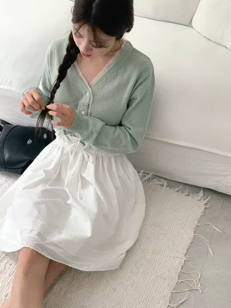 日常微法式・薄紗滾邊針織開襟