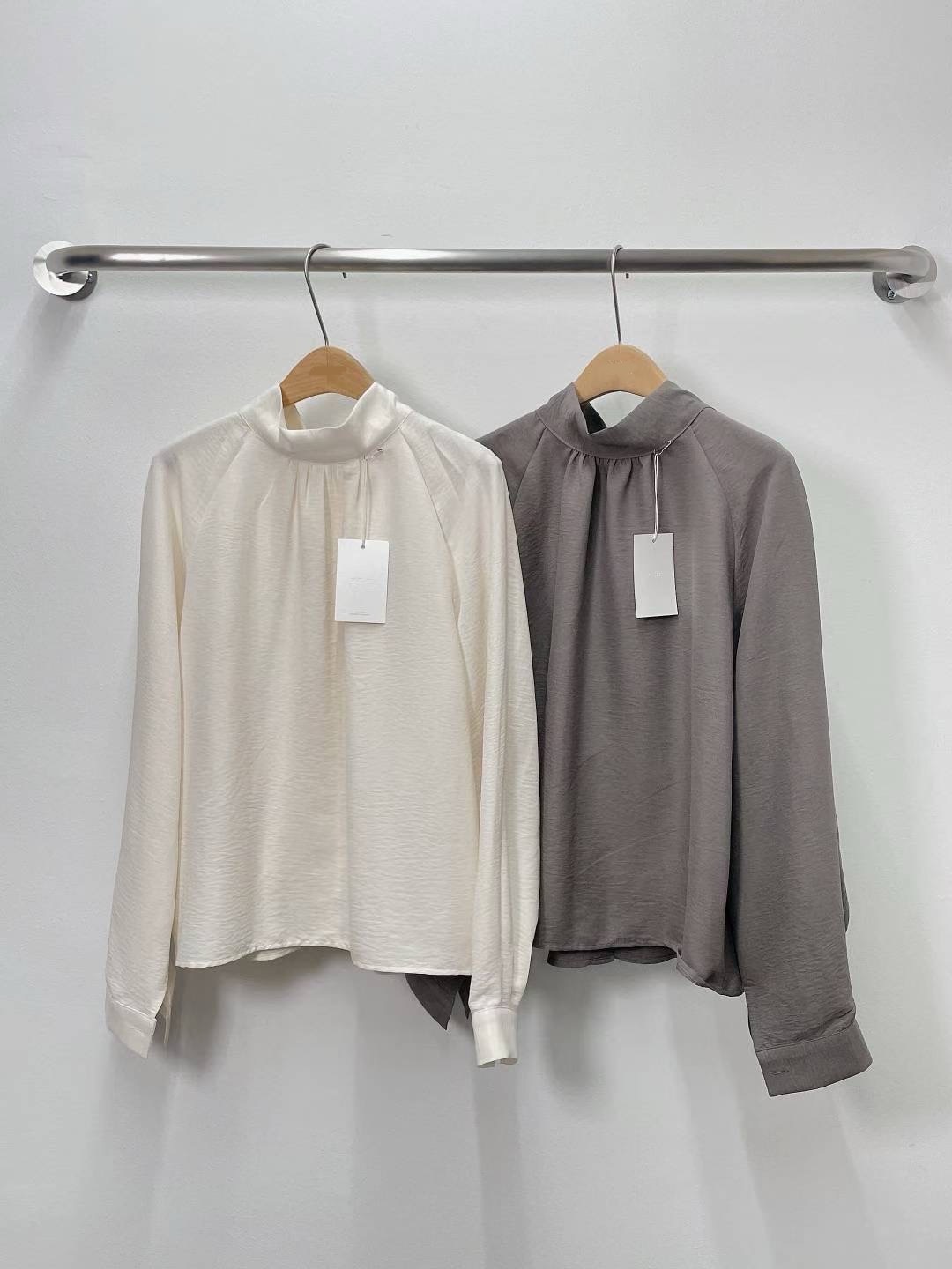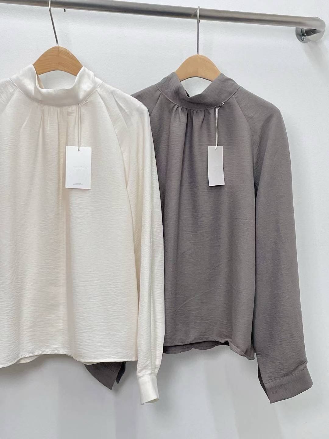 布料輕柔不厚重,無論單穿或搭在針織外套與大衣裡都十分舒適,是日常與通勤都能反覆穿搭的一款上衣。