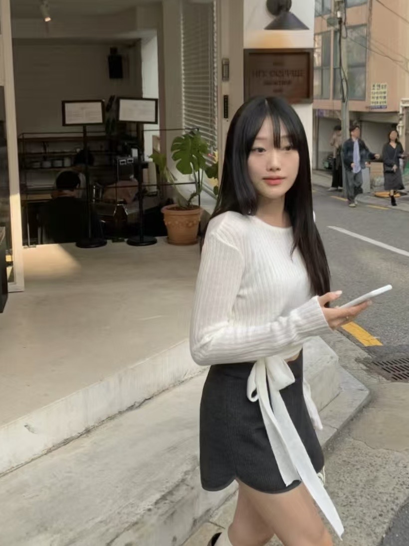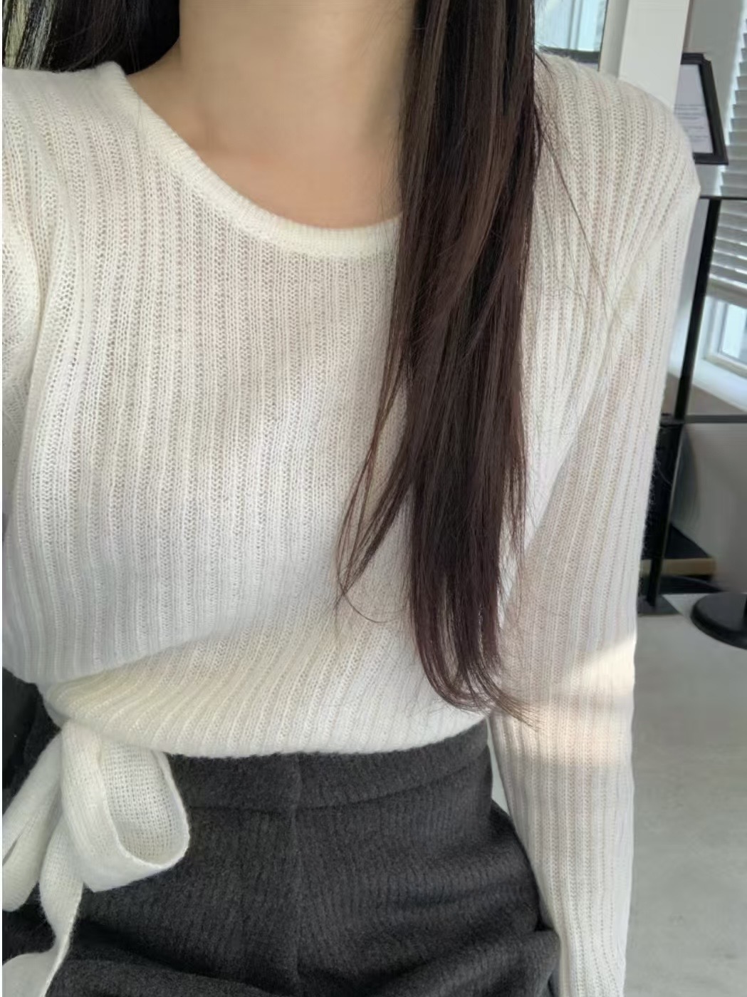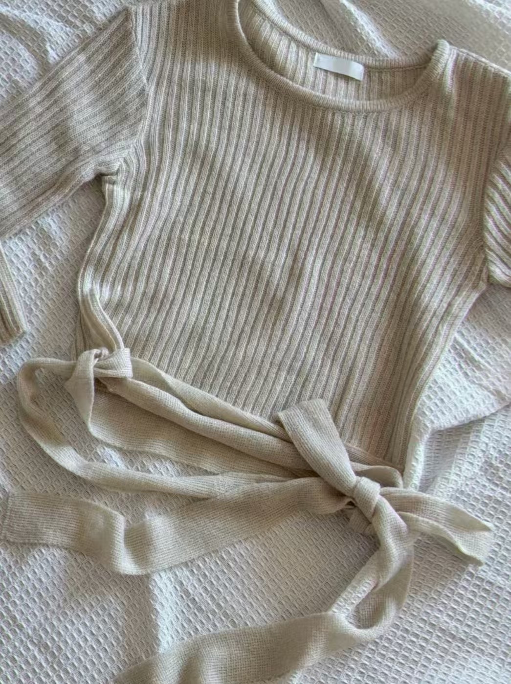 柔光針織・坑條側綁帶上衣