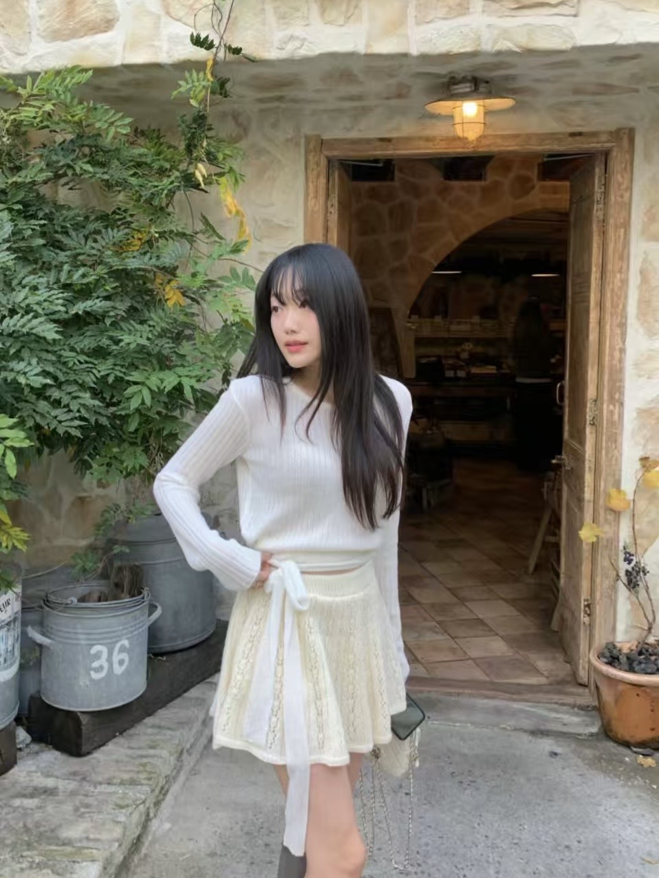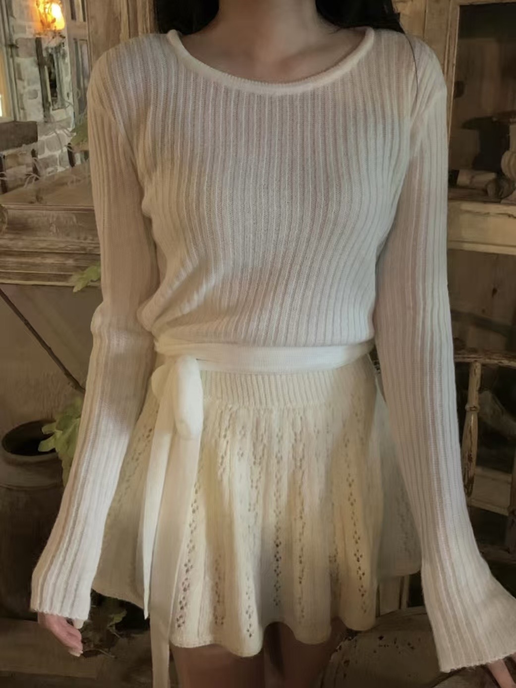 白色鏤空針織兩件套