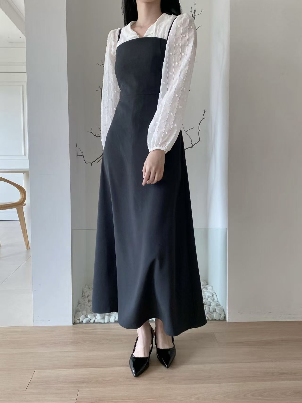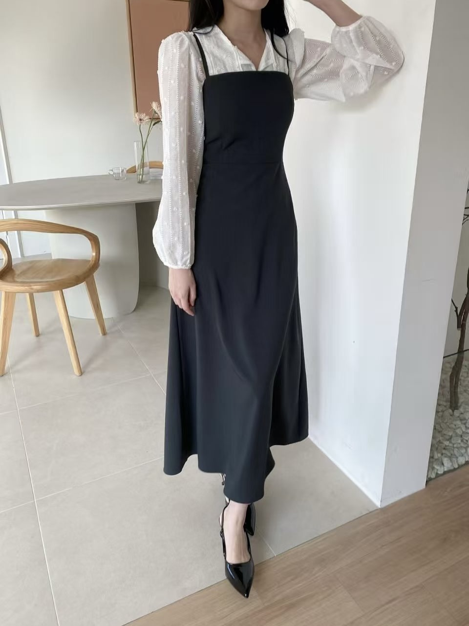 無論單穿或疊搭都很好看,是一件簡單卻很有氣質的長洋裝。