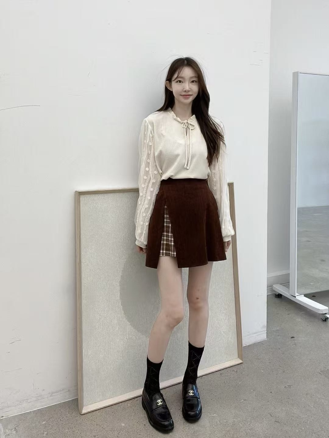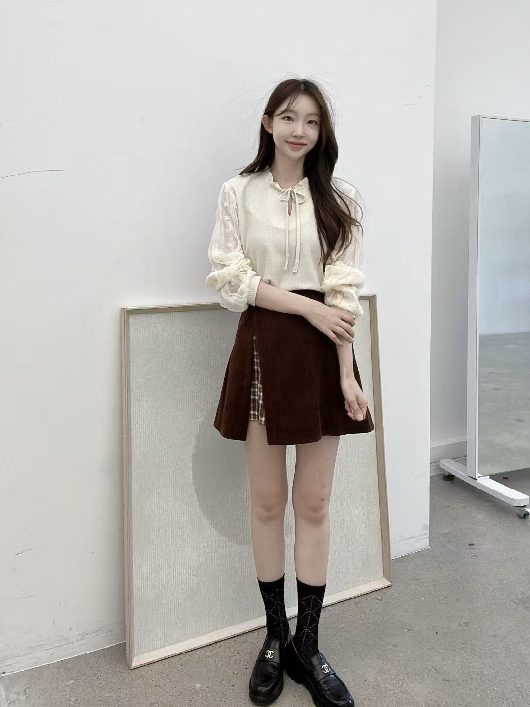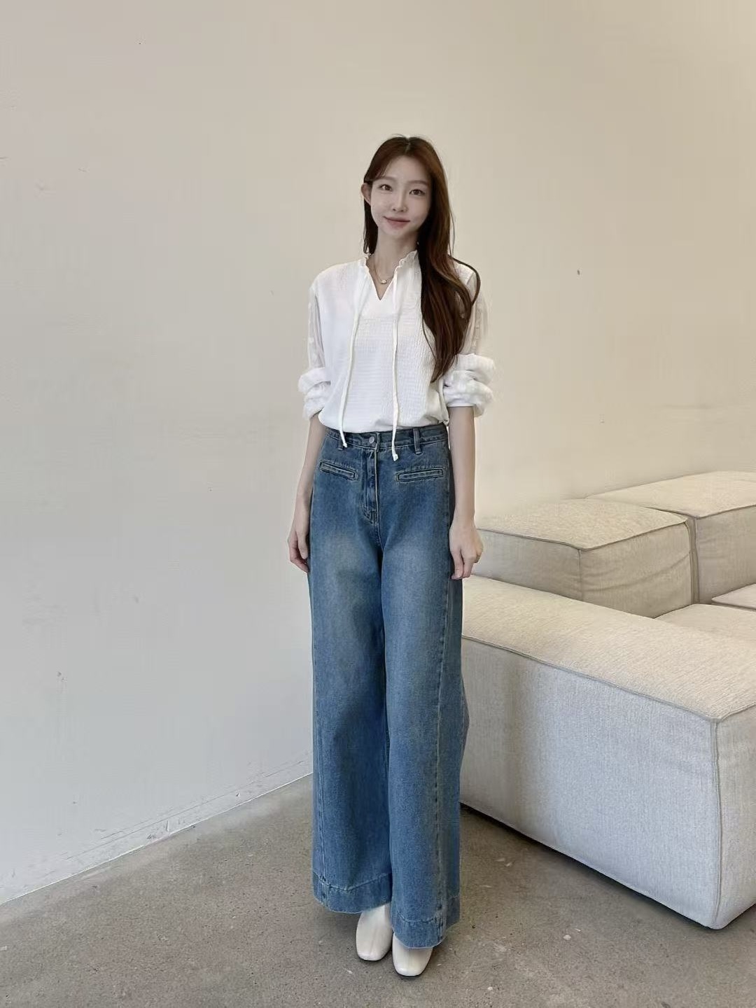 版型寬鬆舒適,搭配牛仔褲是日常感,搭配短裙則更有韓系氣質。