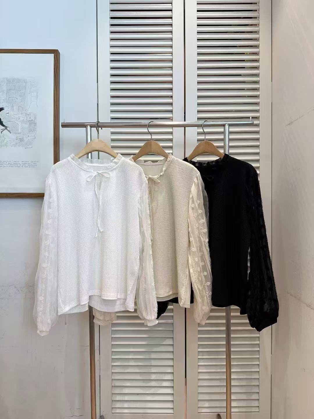氣質拼接透紗上衣