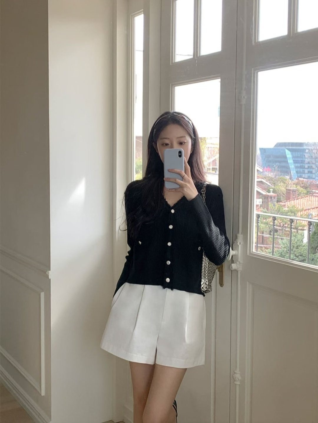 細緻羅紋針織搭配V領設計,修飾臉型與鎖骨線條。