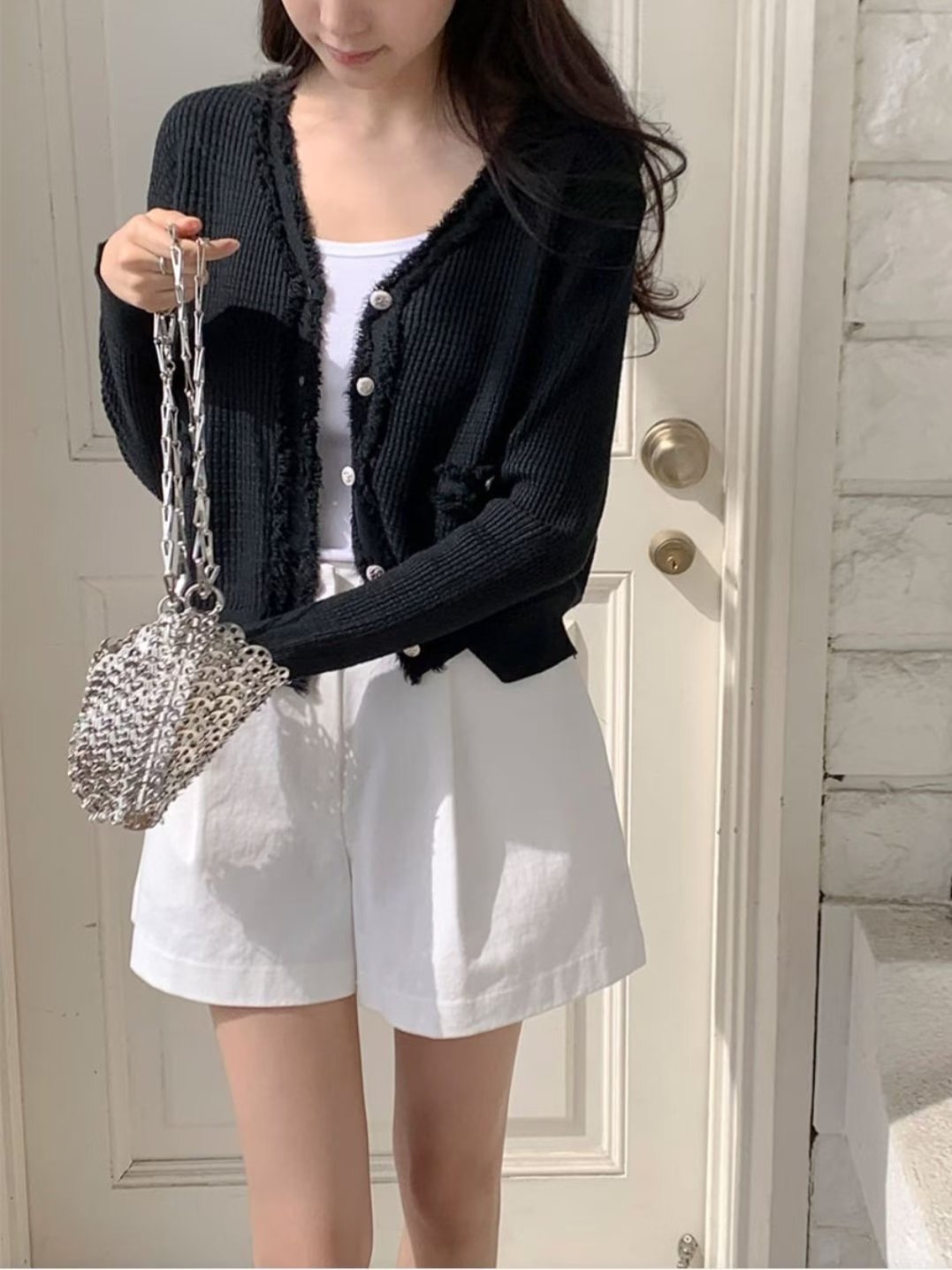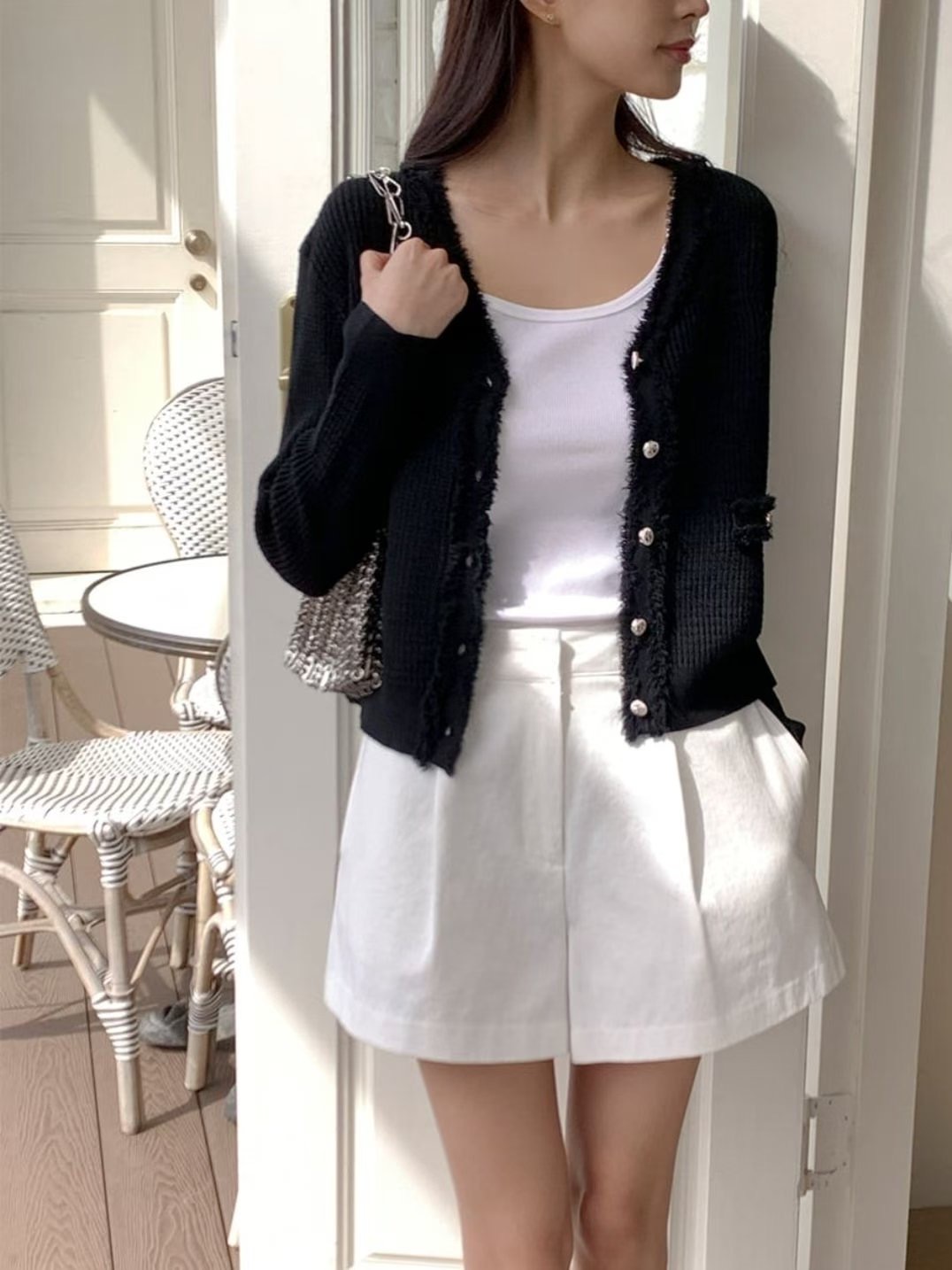 日常微法式・薄紗滾邊針織開襟