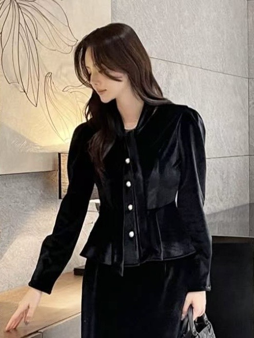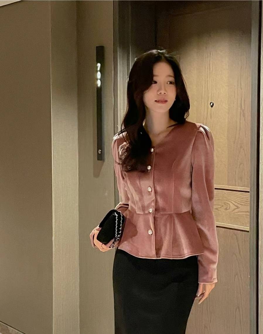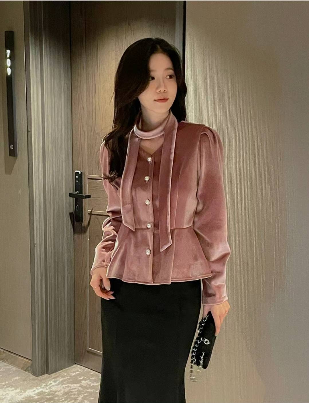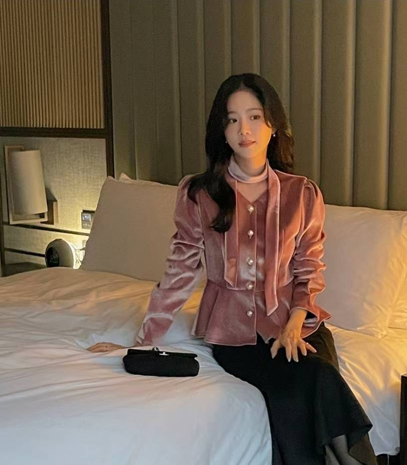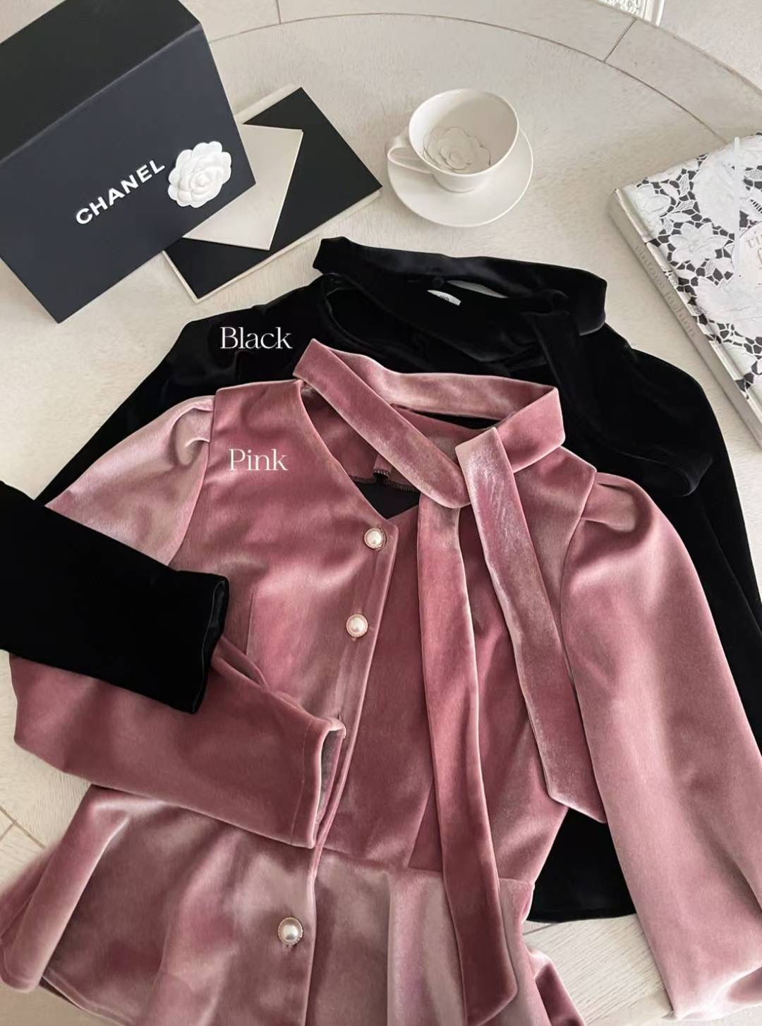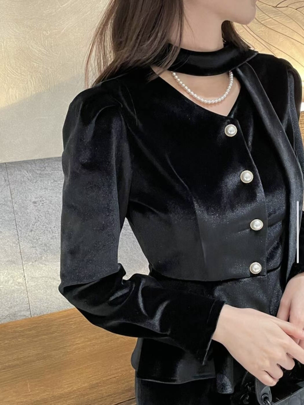 珍珠綁帶絨光上衣