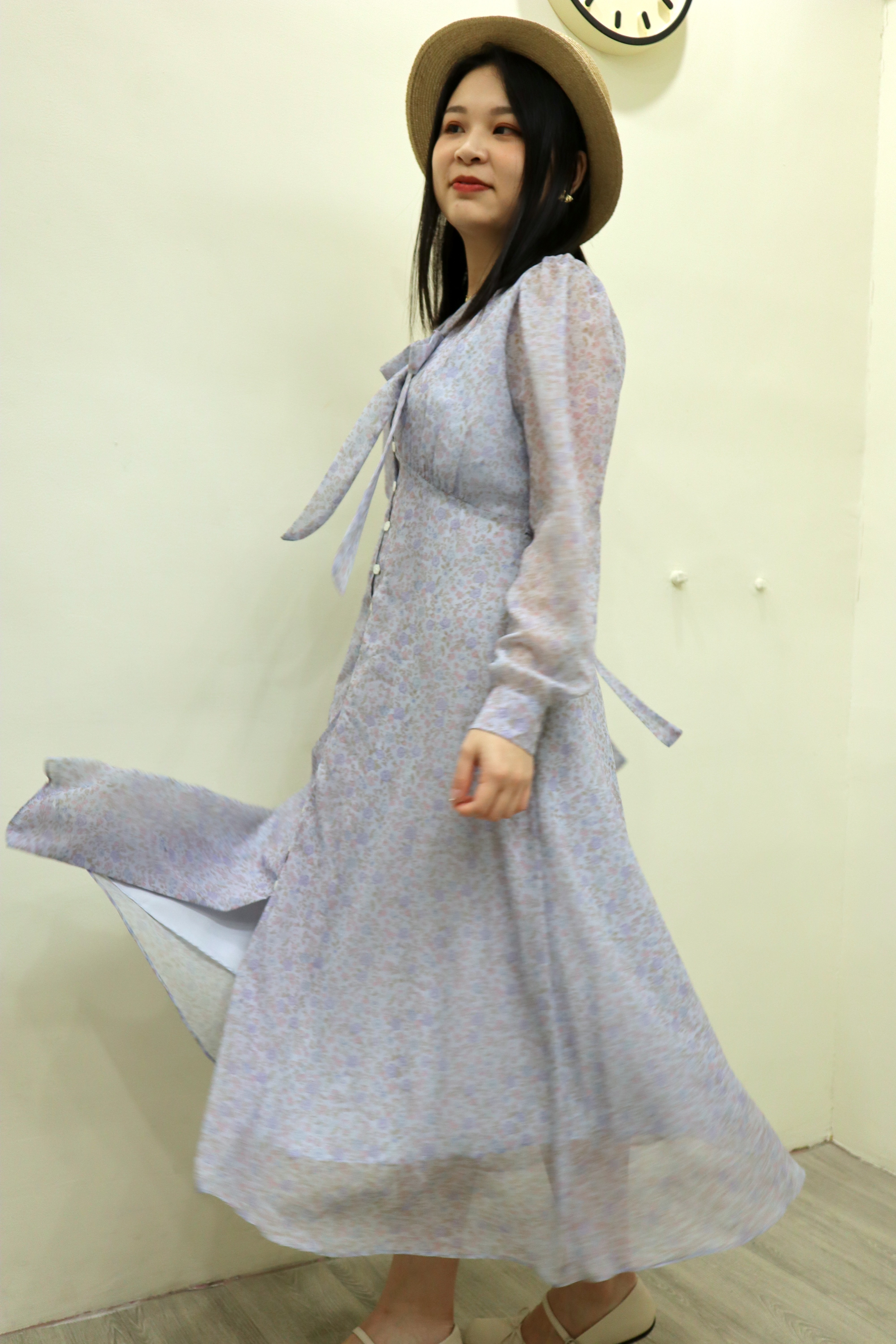 這款小碎花洋裝以細膩花卉布料打造,柔軟親膚的質感讓穿著更舒適。