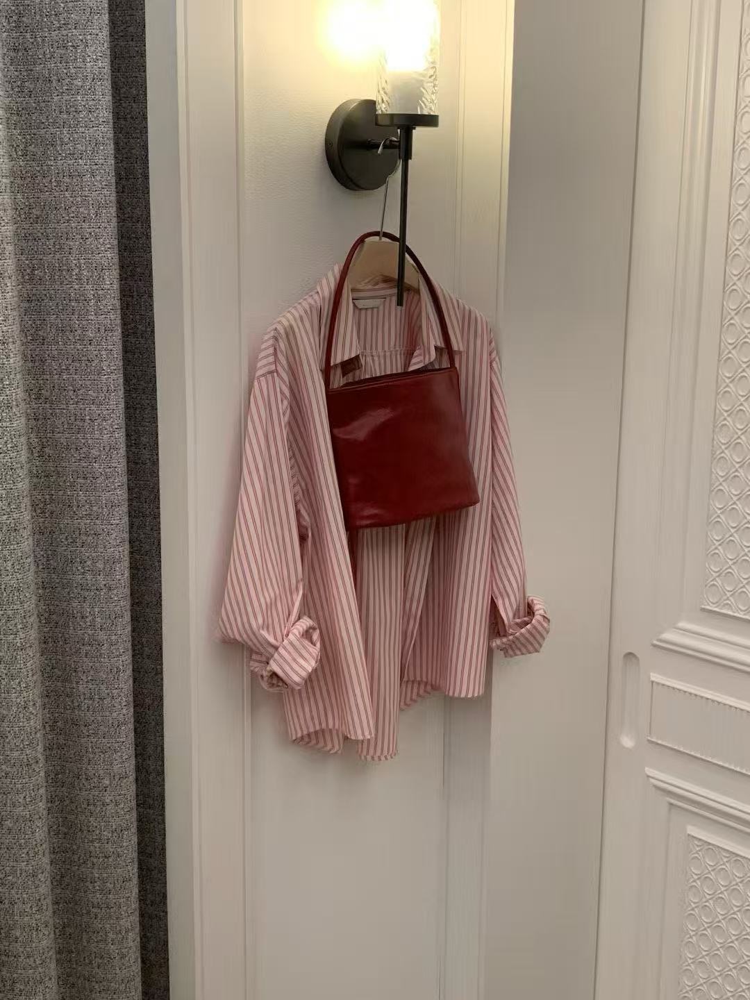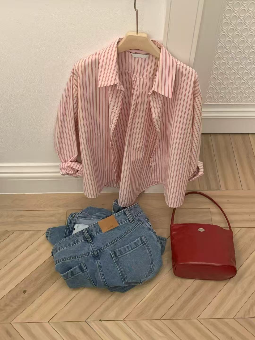 這款細直條紋設計的長袖襯衫,整體版型偏寬鬆,穿起來有自然休閒感,不會過於正式。