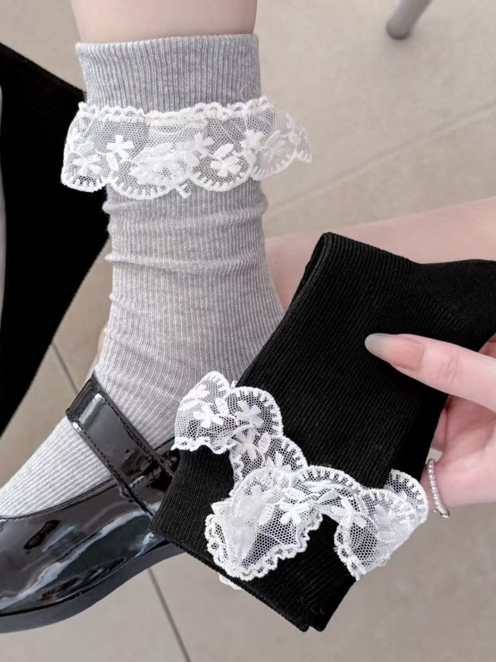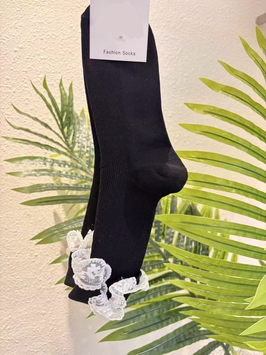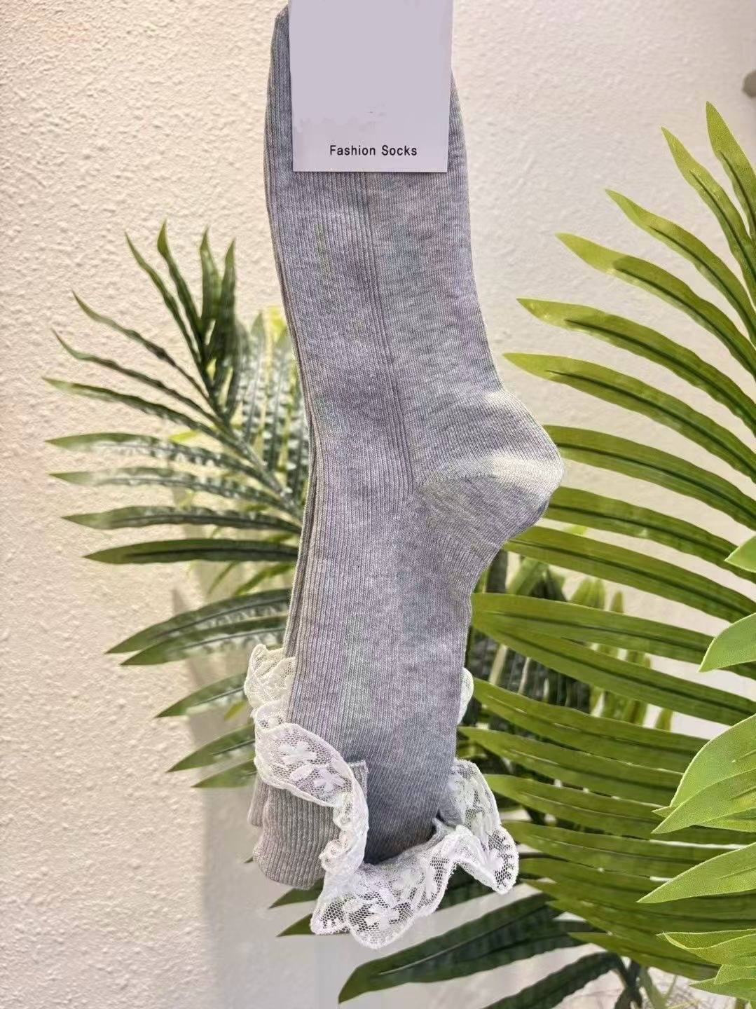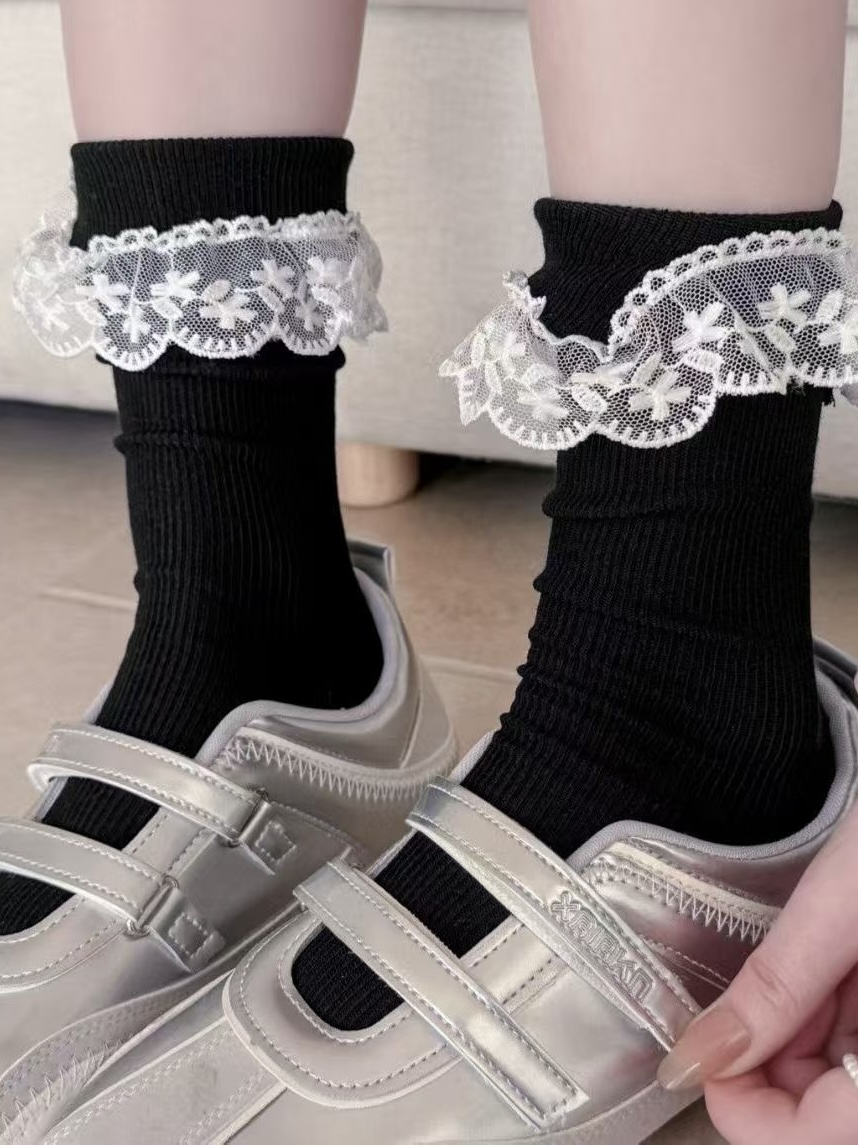 以簡約羅紋襪身結合細緻蕾絲捲邊設計,在低調中加入一點柔和的裝飾感,提升整體穿搭細節。