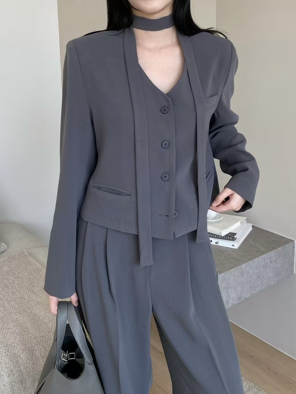 此款為可拆售設計,可依需求單購上身或下身,也可成套搭配,滿足多種穿搭場景,適合上班、正式場合或日常質感穿搭。
