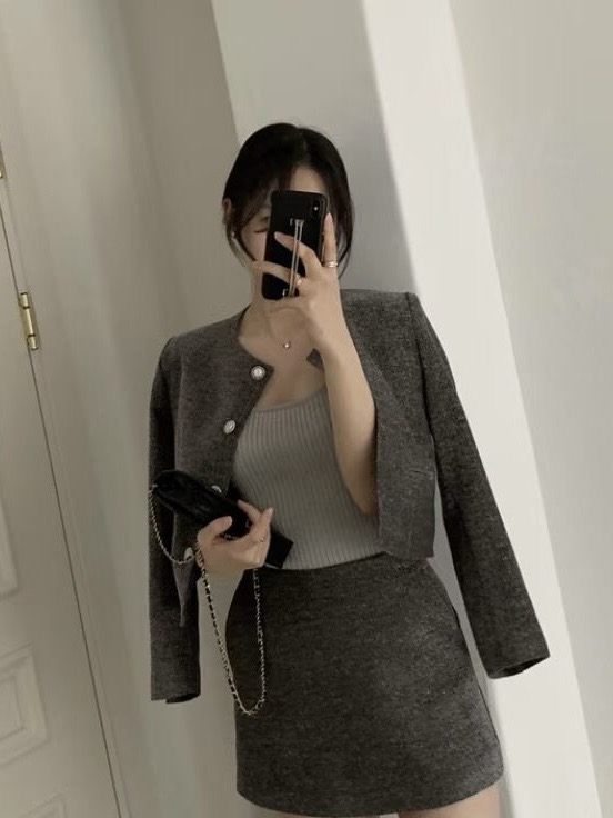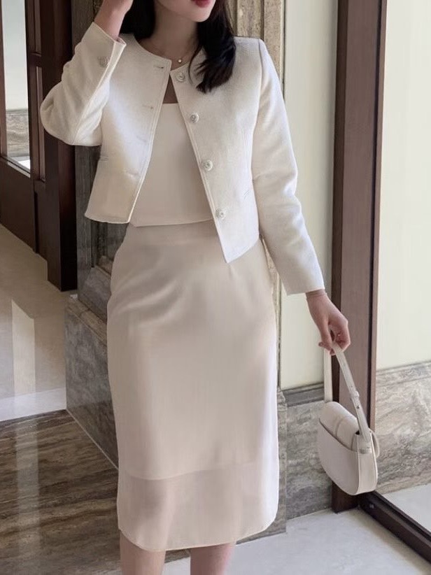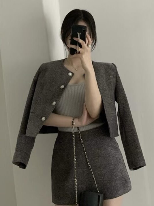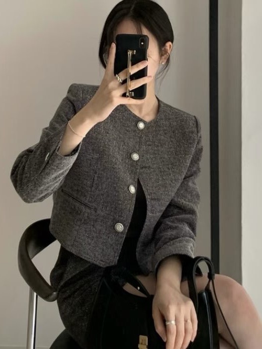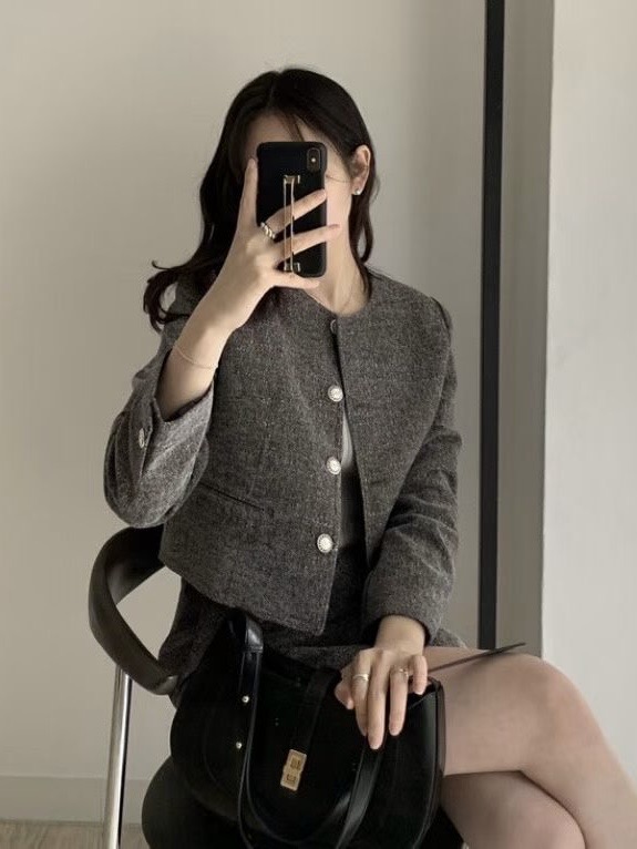 毛呢面料保有挺度與質感,短版剪裁修飾身形,內裡滑順好穿脫。