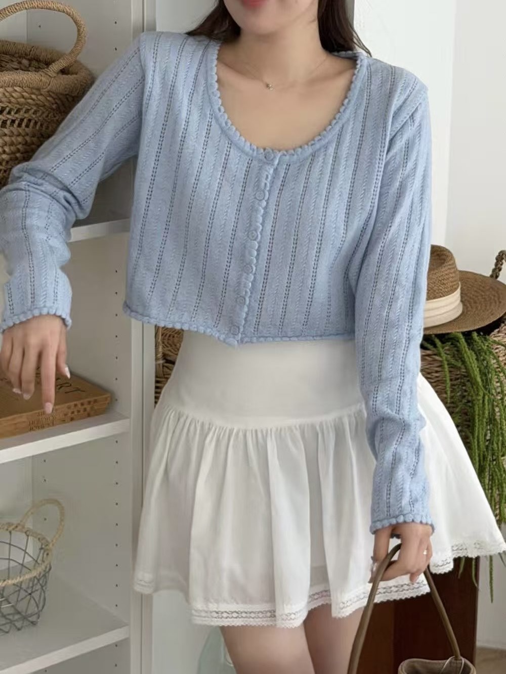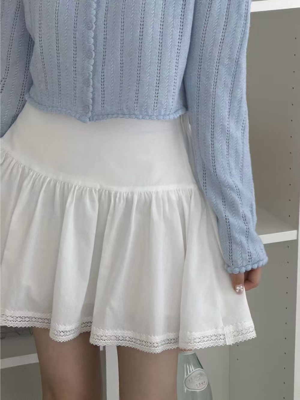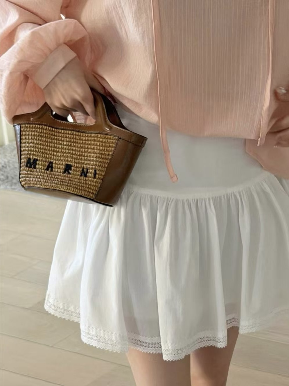 裙擺採用微蛋糕層次剪裁,份量感剛好,不會過於蓬鬆,反而多了一點輕盈感。下擺拼接細緻蕾絲,讓整體多了柔和細節,穿起來帶點溫柔氣質。